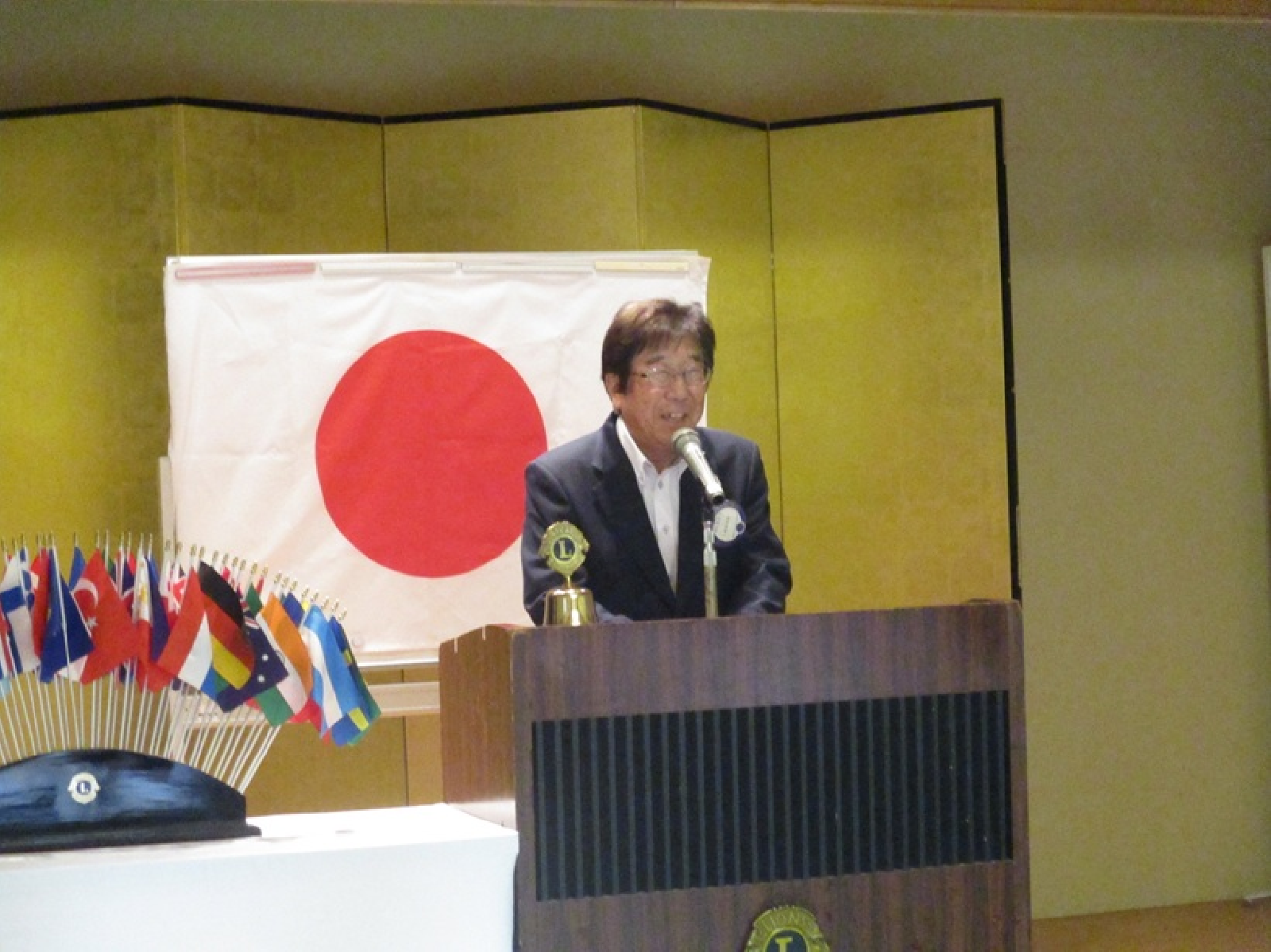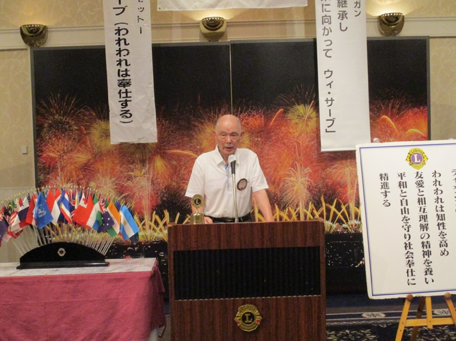 ■開会ゴング&挨拶 会長 L松浦和彦 ・今年度スローガン「伝統を継承し 未来に向かって ウィ・サーブ!」 ・幹事L五十嵐、会計L片沼と一緒にがんばります。