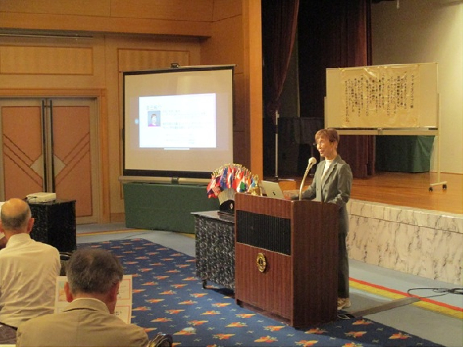 ■開会ゴング&挨拶 会長 L松浦和彦 ・今回は米百俵支部との交流例会として、支部から4名より参加されています。 ・今年度初めての夜例会なので、皆さまと懇親を深めたいと思います。 ■ゲストスピーチ 永井順子様 ・「健康を支える会社が選ばれる時代へ」~健康経営と未来を守る仕組みとは~