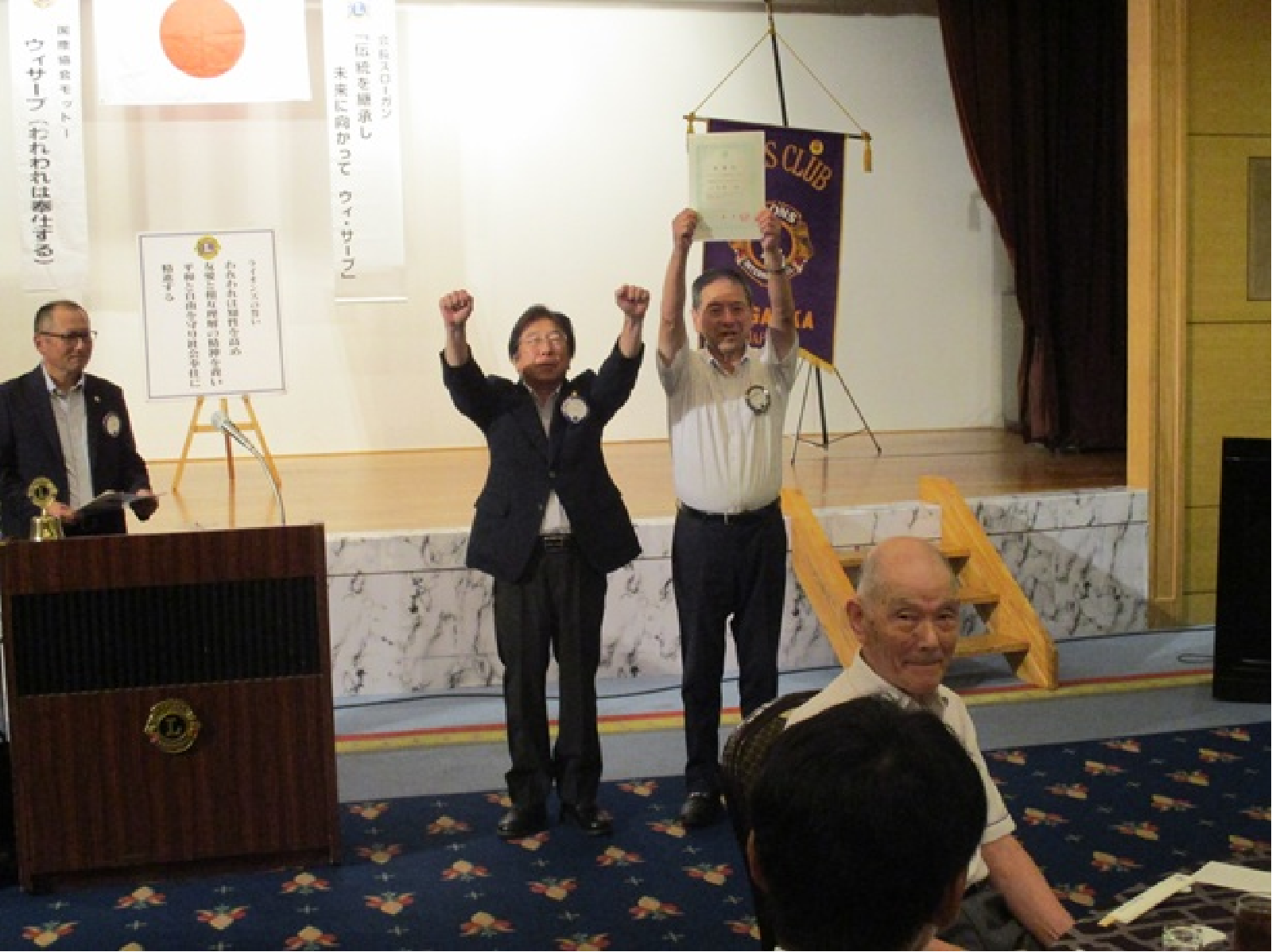 ■幹事報告 幹事 L五十嵐隆幸 ・地区より委嘱状の伝達 → 地区GLTコーディネーター L平澤聡 ・地区よりガイディングライオン認定証 → L平澤聡、L秋山敦 ■閉会ゴング 第1副会長 L小島孝之